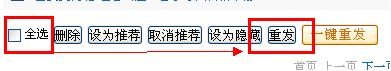 b) “重發(fā)”:需要先勾選索要刷新的線路——可以只勾選某幾條,也可以通過(guò)選擇“全選”選項(xiàng)進(jìn)行選擇(“全選”一次最多可以選擇十條,即該頁(yè)面所列出來(lái)的所有線路)——然后勾選“重發(fā)”即可。