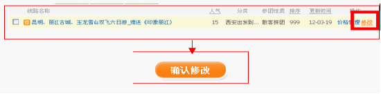 c) 第三個(gè)辦法沒(méi)有個(gè)具體的名字,是一條一條的刷新,這個(gè)辦法比較有針對(duì)性。操作步驟是,選擇要刷新的線路——>點(diǎn)擊“修改”——>如果線路有需要修改的地方則直接進(jìn)行修改,如果沒(méi)有則直接點(diǎn)擊“確定修改”。