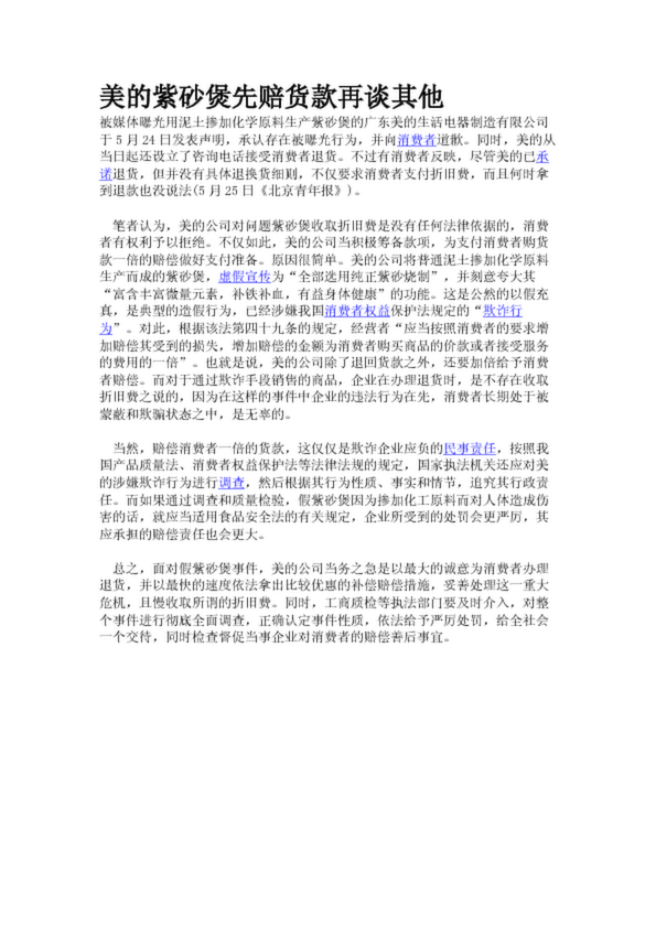 美的紫砂煲先賠貨款再談其他(19.80KB)