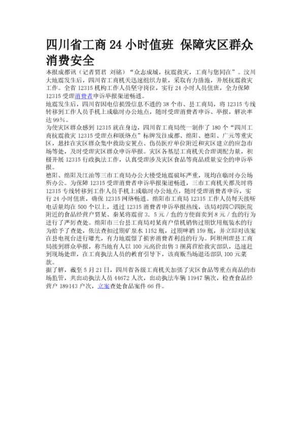 四川省工商24小時值班 保障災區群眾消費安全