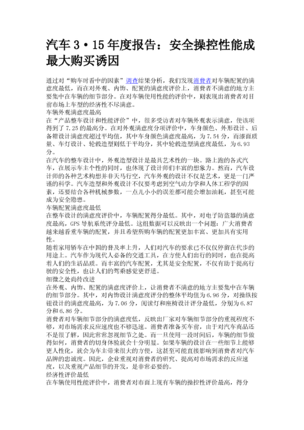 汽車3·15年度報告:安全操控性能成最大購買誘因(23.57KB)