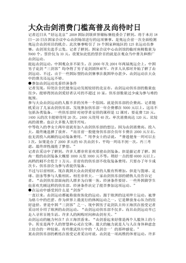 大眾擊劍消費門檻高普及尚待時日(24.50KB)