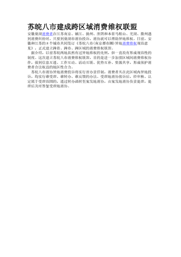 蘇皖八市建成跨區(qū)域消費維權(quán)聯(lián)盟