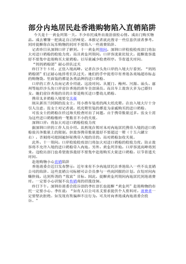 部分內(nèi)地居民赴香港購物陷入直銷陷阱(21.63KB)