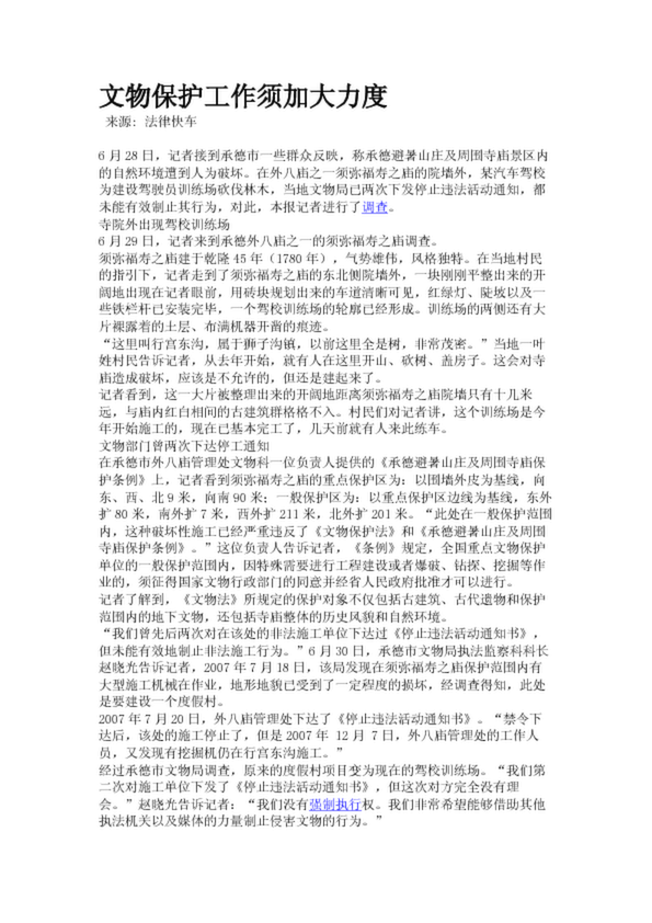 文物保護工作須加大力度