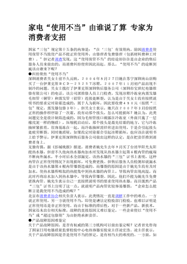 家電“使用不當”由誰說了算 專家為消費者支招