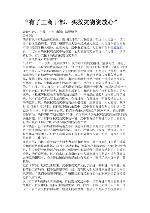 “有了工商干部,買救災物資放心”