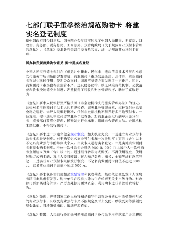 七部門聯手重拳整治規范購物卡 將建實名登記制度(51.25KB)