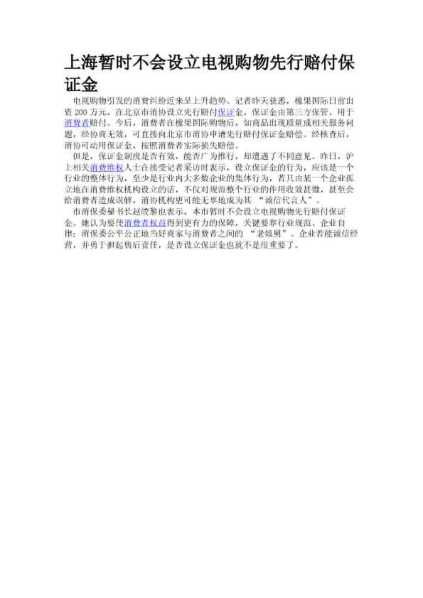 上海暫時不會設立電視購物先行賠付保證金