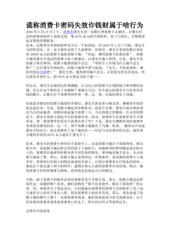 謊稱消費卡密碼失效詐錢財屬于啥行為(25.56KB)