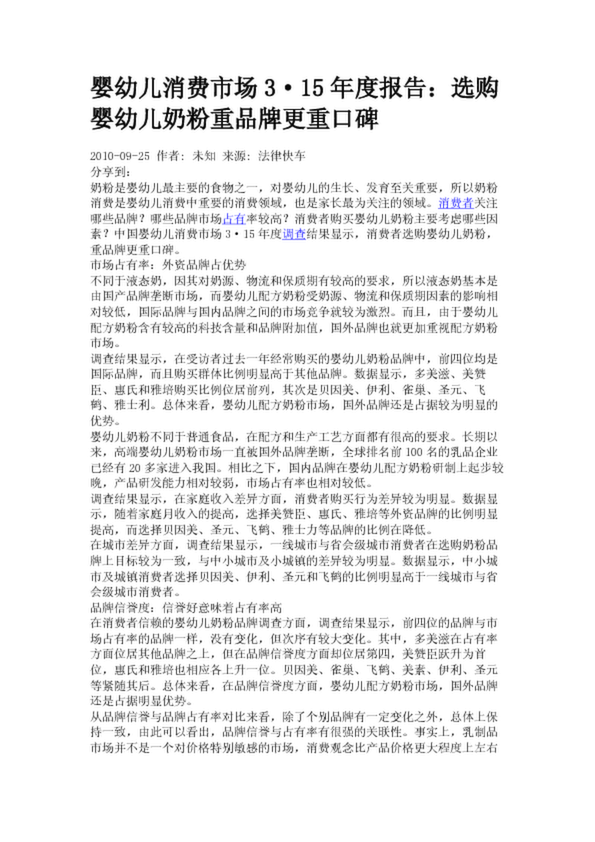 嬰幼兒消費(fèi)市場3·15年度報(bào)告:選購嬰幼兒奶粉重品牌更重口碑