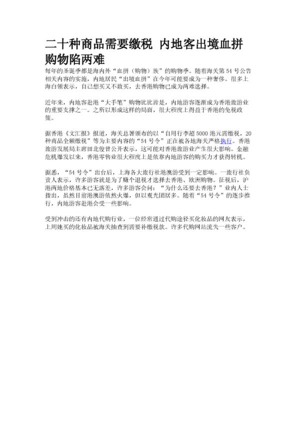 二十種商品需要繳稅 內地客出境血拼購物陷兩難(17.75KB)