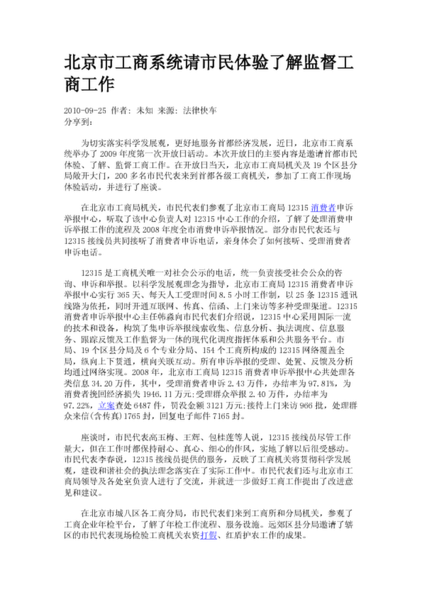 北京市工商系統請市民體驗了解監督工商工作(3.91KB)