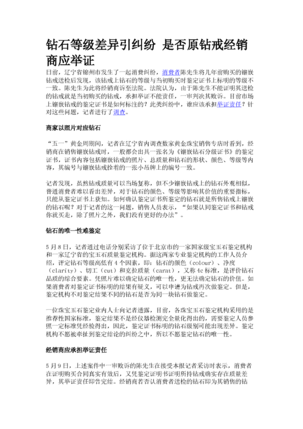 鉆石等級差異引糾紛 是否原鉆戒經(jīng)銷商應(yīng)舉證
