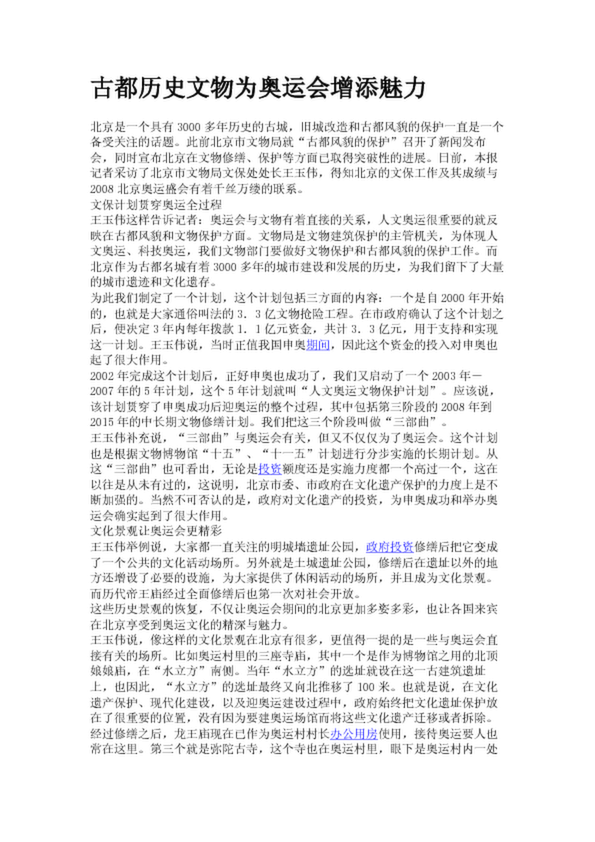 古都歷史文物為奧運會增添魅力