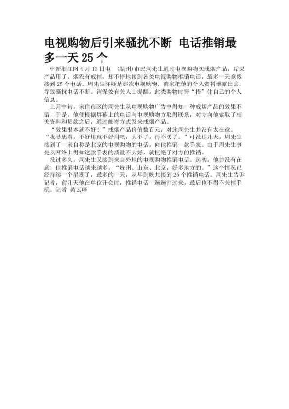 電視購(gòu)物后引來(lái)騷擾不斷 電話推銷最多一天25個(gè)