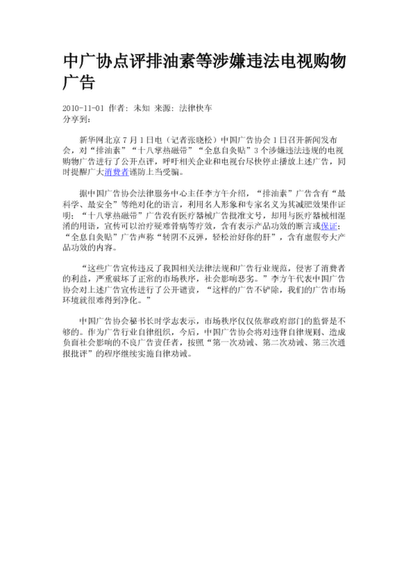 中廣協點評排油素等涉嫌違法電視購物廣告(2.96KB)