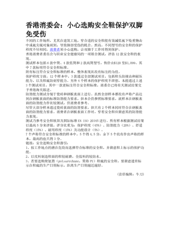 香港消委會:小心選購安全鞋保護雙腳免受傷