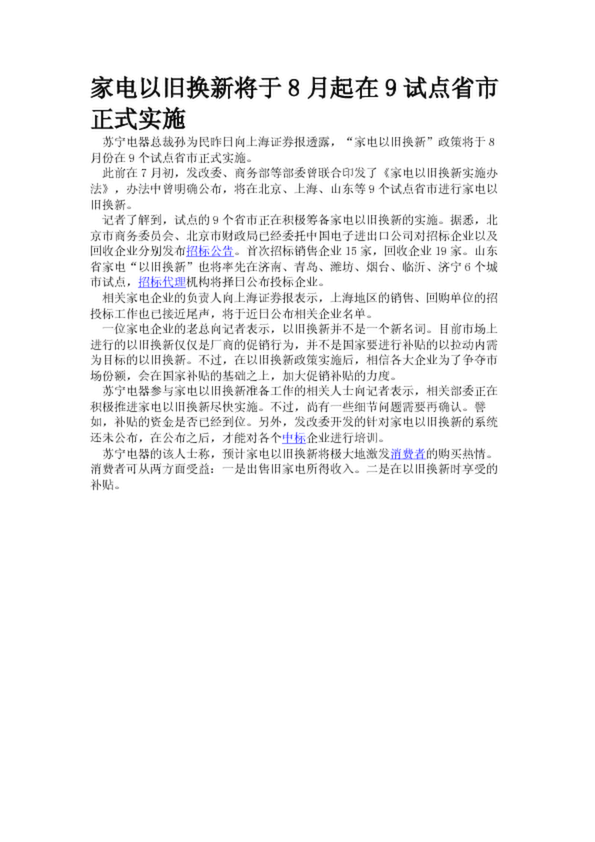 家電以舊換新將于8月起在9試點省市正式實施(19.05KB)