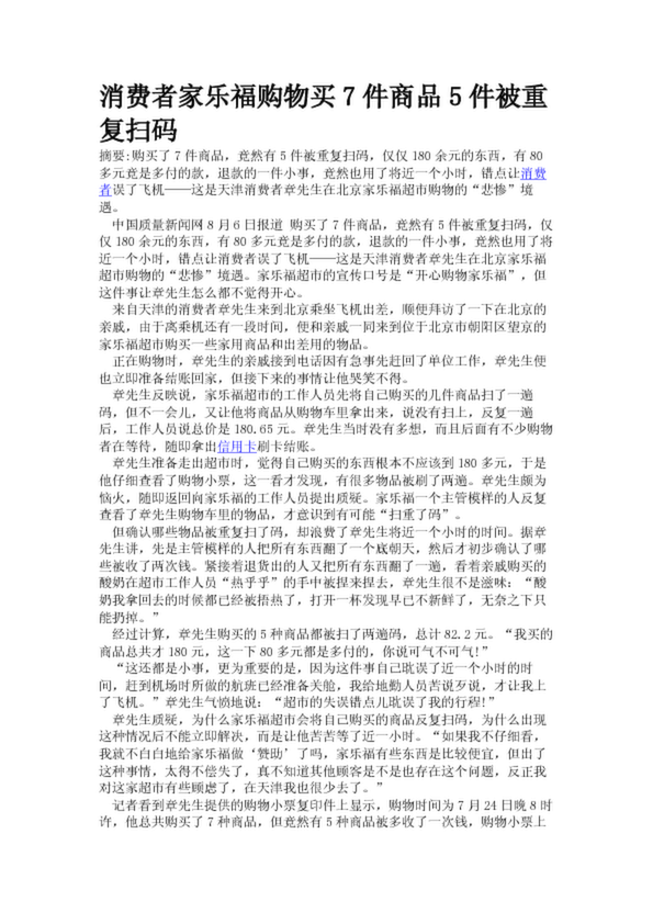 消費者家樂福購物買7件商品5件被重復掃碼(21.67KB)