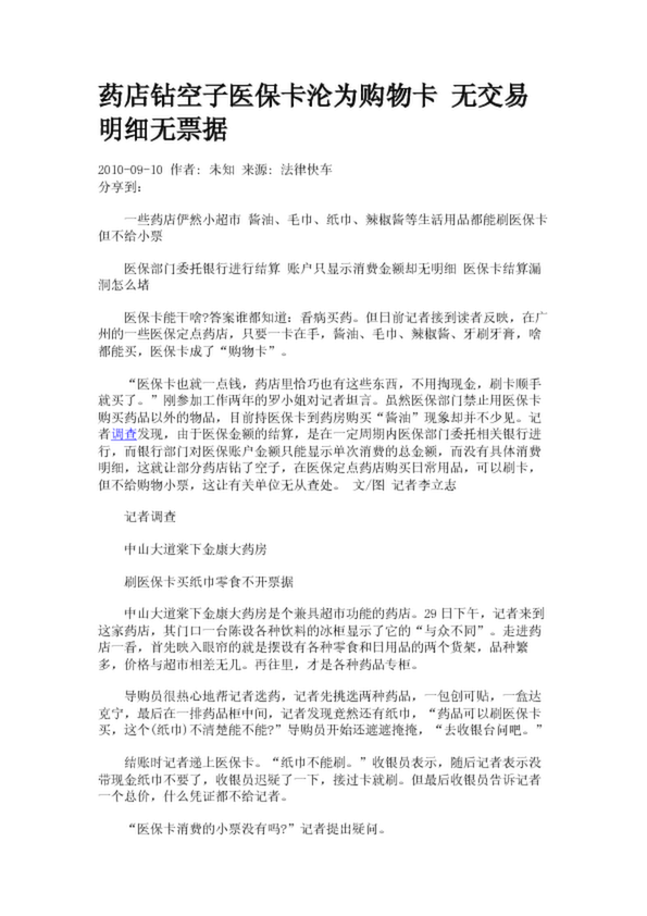 藥店鉆空子醫保卡淪為購物卡 無交易明細無票據