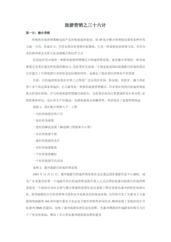 為加快旅游國際化步伐,把張家界建設(shè)成為世界旅游目的地,特提出以下三十六計(jì)對策措施供決策部門參考。 第一計(jì): 傳統(tǒng)的市場營銷策略包括產(chǎn)品價(jià)格渠道和促進(jìn),即 4P 組合整合 營銷則是要使各種作用力統(tǒng)一方向,形成合力,共同為景區(qū)的...