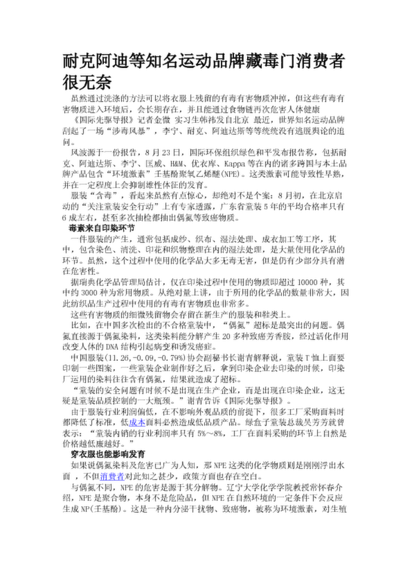 耐克阿迪等知名運動品牌藏毒門消費者很無奈(27.15KB)