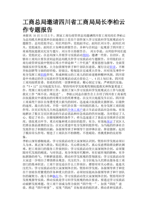 工商總局邀請四川省工商局局長李柏云作專題報告