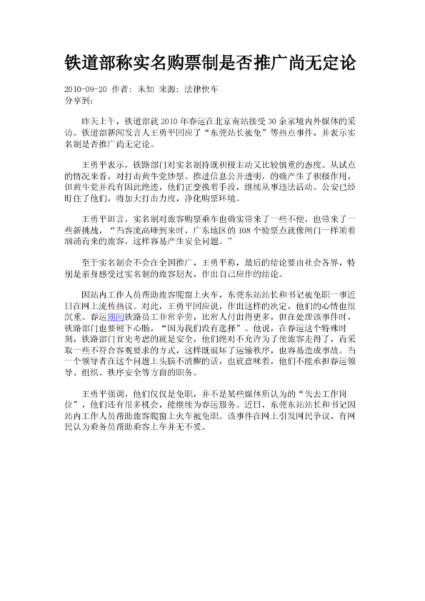 鐵道部稱實名購票制是否推廣尚無定論(3.19KB)