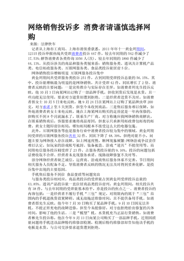 網絡銷售投訴多 消費者請謹慎選擇網購(22.09KB)