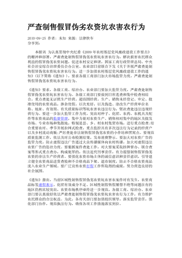 嚴查制售假冒偽劣農資坑農害農行為(3.89KB)