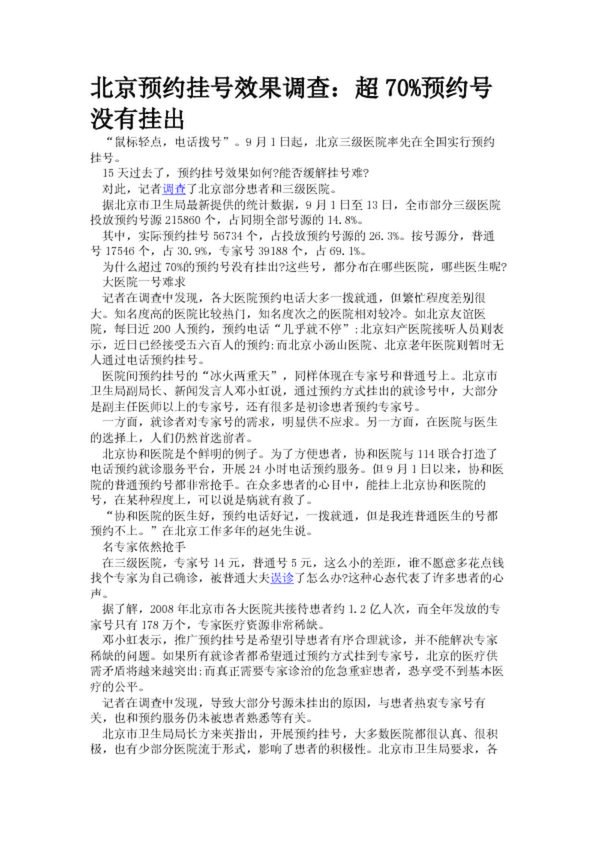 北京預約掛號效果調查:超70%預約號沒有掛出(26.32KB)