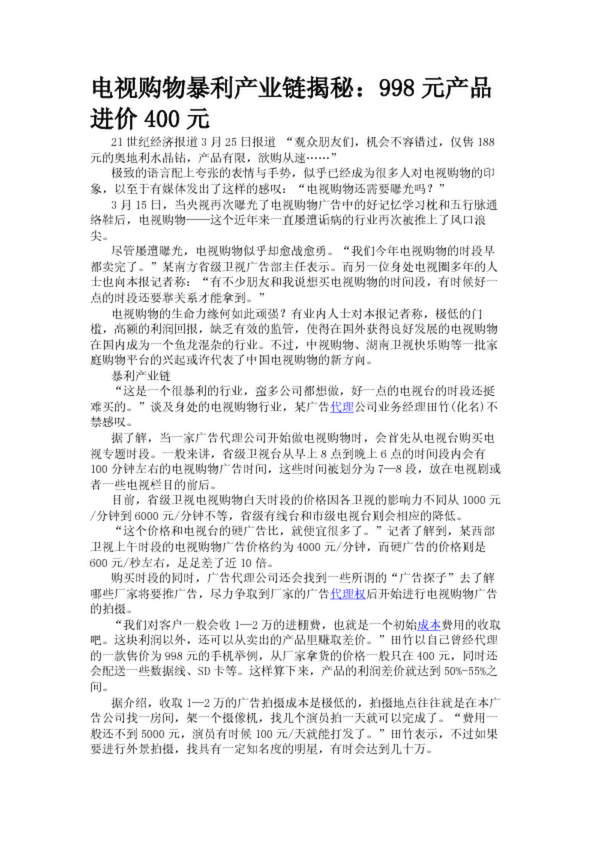 電視購物暴利產業鏈揭秘:998元產品進價400元
