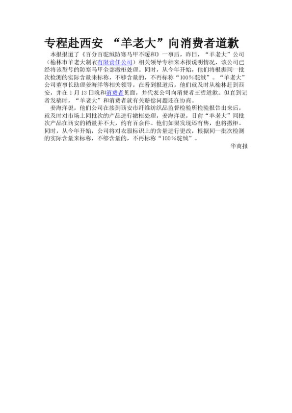 專程赴西安 “羊老大”向消費者道歉(17.05KB)