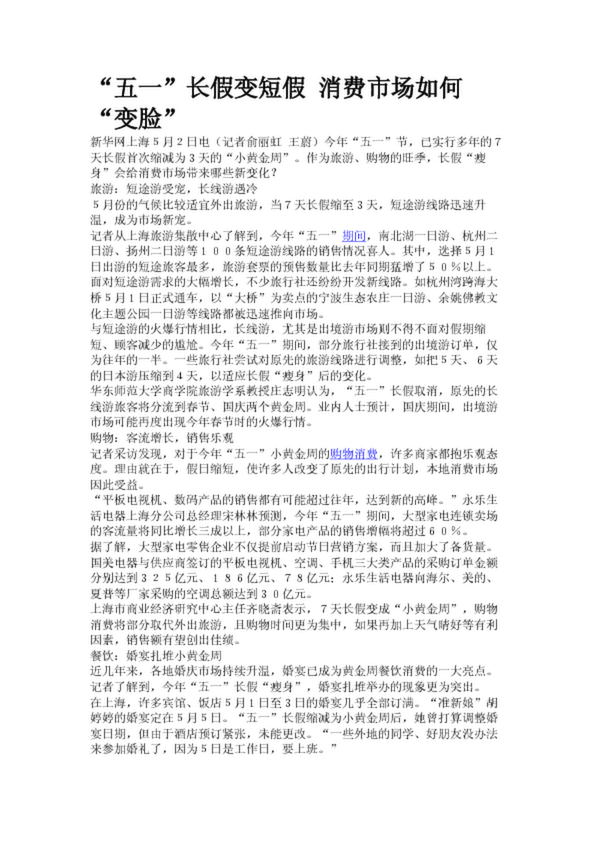 “五一”長(zhǎng)假變短假 消費(fèi)市場(chǎng)如何“變臉”