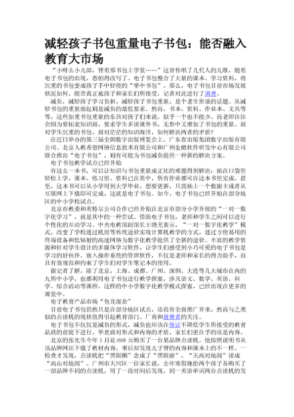 減輕孩子書包重量電子書包:能否融入教育大市場(25.55KB)