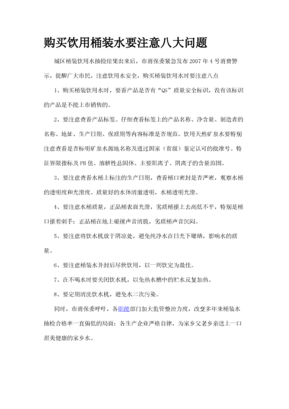購買飲用桶裝水要注意八大問題(19.07KB)