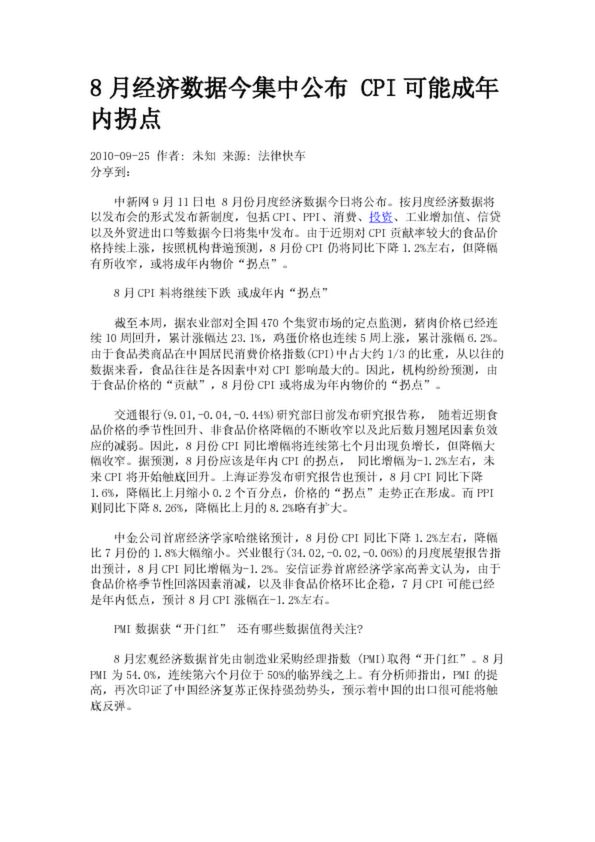 8月經(jīng)濟(jì)數(shù)據(jù)今集中公布 CPI可能成年內(nèi)拐點