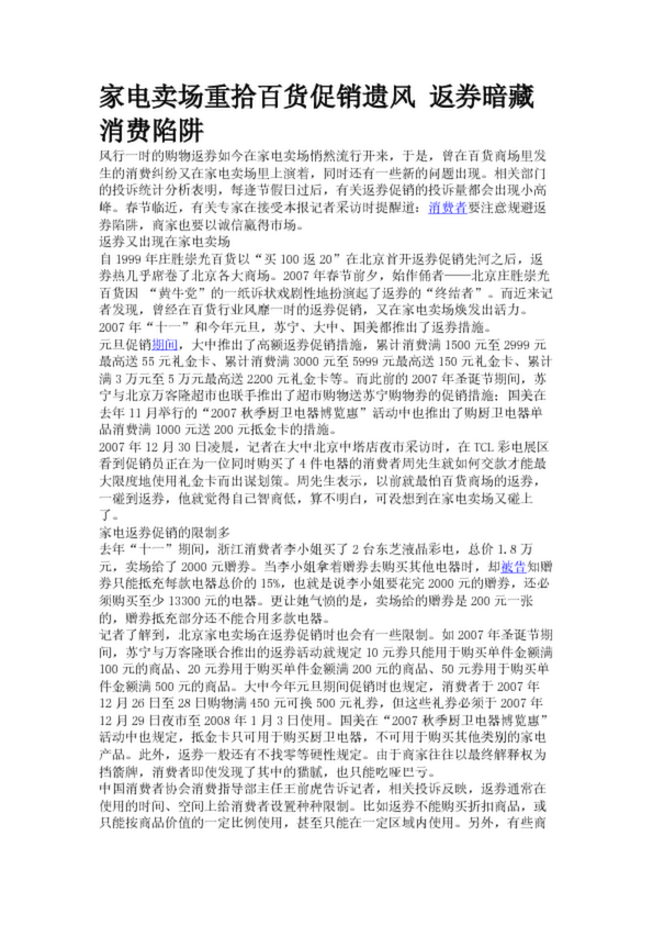 家電賣場重拾百貨促銷遺風 返券暗藏消費陷阱