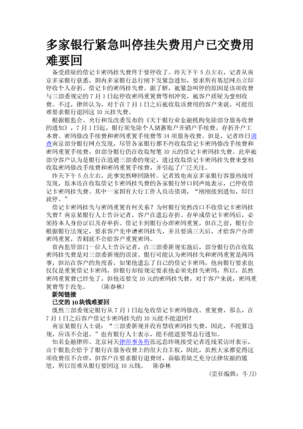 多家銀行緊急叫停掛失費用戶已交費用難要回