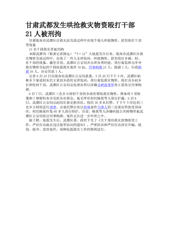 甘肅武都發(fā)生哄搶救災(zāi)物資毆打干部 21人被刑拘