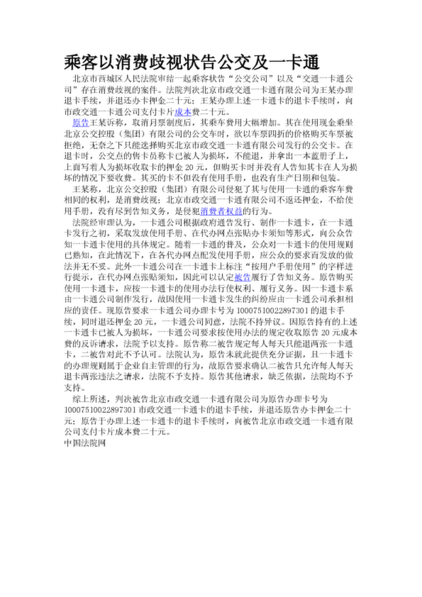 乘客以消費歧視狀告公交及一卡通(19.60KB)
