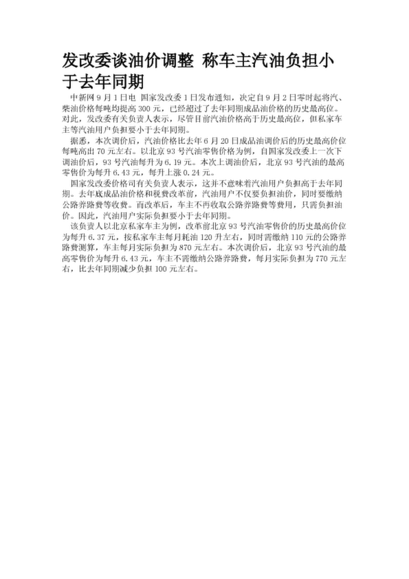 發改委談油價調整 稱車主汽油負擔小于去年同期