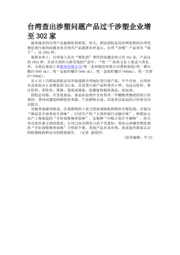 臺灣查出涉塑問題產(chǎn)品過千涉塑企業(yè)增至302家