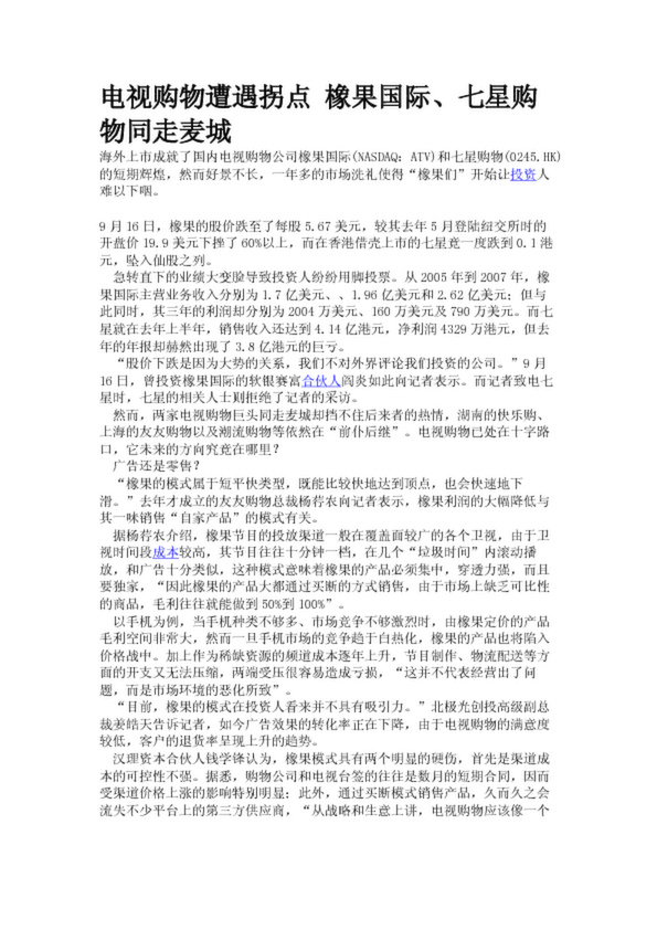 電視購物遭遇拐點 橡果國際、七星購物同走麥城(28.33KB)