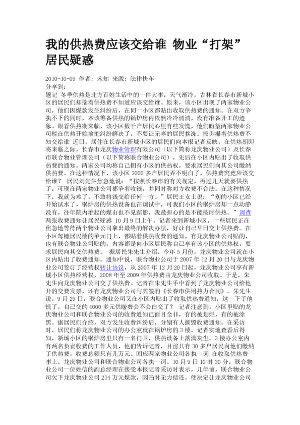 我的供熱費應該交給誰 物業“打架”居民疑惑(5.95KB)