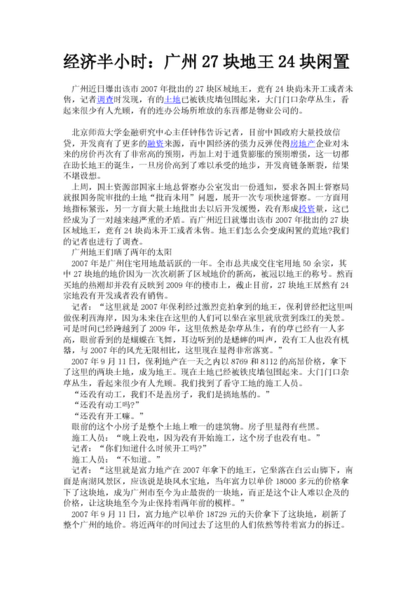 經濟半小時:廣州27塊地王24塊閑置(53.62KB)