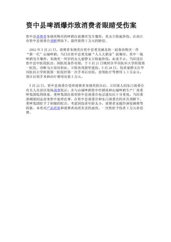 資中縣啤酒爆炸致消費(fèi)者眼睛受傷案(18.04KB)