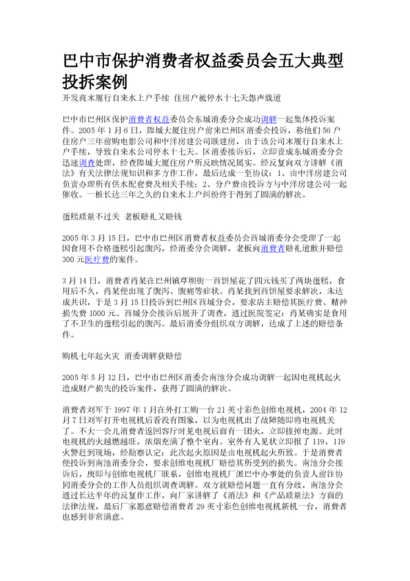 巴中市保護(hù)消費(fèi)者權(quán)益委員會五大典型投拆案例