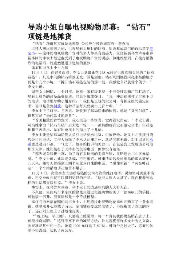 導購小姐自曝電視購物黑幕:“鉆石”項鏈是地攤貨(29.54KB)
